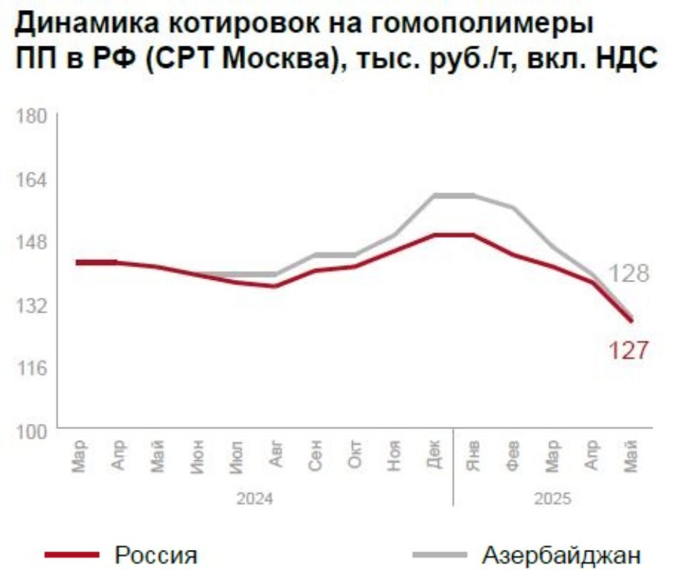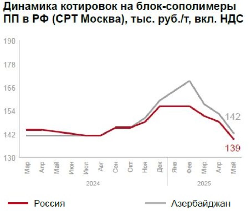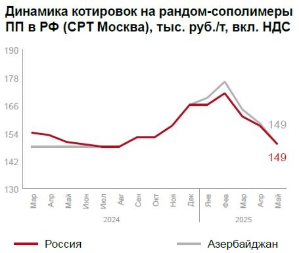 На рынке полипропилена ситуация сложнее: растёт спрос на уфимский гомополимер при падении цен на марки Бален (до -1000 руб./т) и снижении интереса к блок-сополимерам.