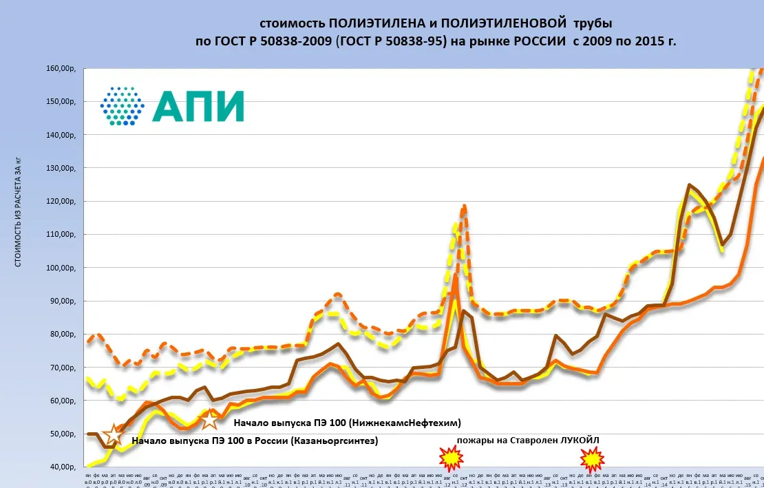 Исторический прецедент показывает, как аварии двигают цены на сырьё: после аварии на «Ставролене» рынок ПЭНД отреагировал ростом цен, что сократило производство ПЭ труб. Рынок трубного полиэтилена в России традиционно балансирует на грани достаточности. Даже плановые остановки производств для ремонта заметно влияют на доступность трубных марок. Незапланированная авария на крупной площадке ЛПЭНП могла бы создать риски для переработчиков.