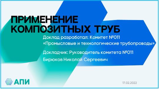 Применение композитных труб Генеральный Директор "Пэтсиб"Руководитель комитета 011 "Промысловые и технологические трубопроводы" докладчик: Николай Сергеевич Бирюков