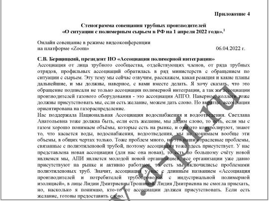 Формирование списка объемов потребления сырья трубными предприятиями Российской Федерации, производящие полиэтиленовые трубы. Обсуждение и выработка планов действий по решению сырьевой проблемы.